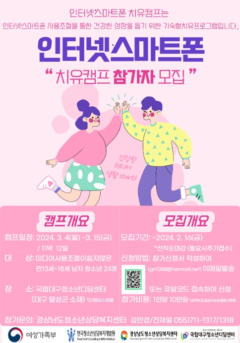 ![]() 인터넷·스마트폰 치유캠프 참가자모집 안내 포스터 |