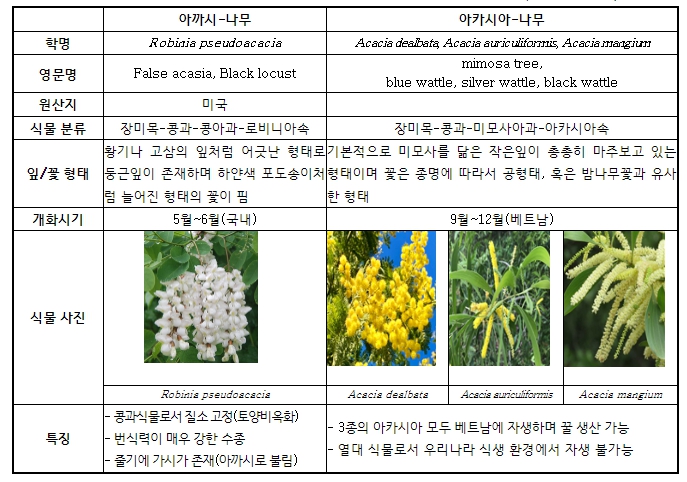 그러나 한국-베트남 자유무역협정(FTA) 체결로 베트남에서 생산된 꿀이 수입됨에 따라 베트남 아카시아꿀과 국산 아까시꿀이 혼동될 우려가 있어 정확한 용어 사용이 필요하다.