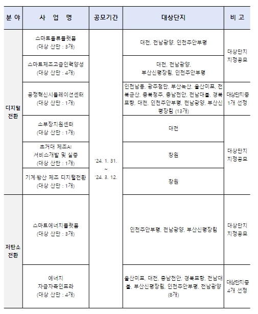 ![]() ‘24년도 스마트그린산단 촉진사업 통합공모 사업내역 |