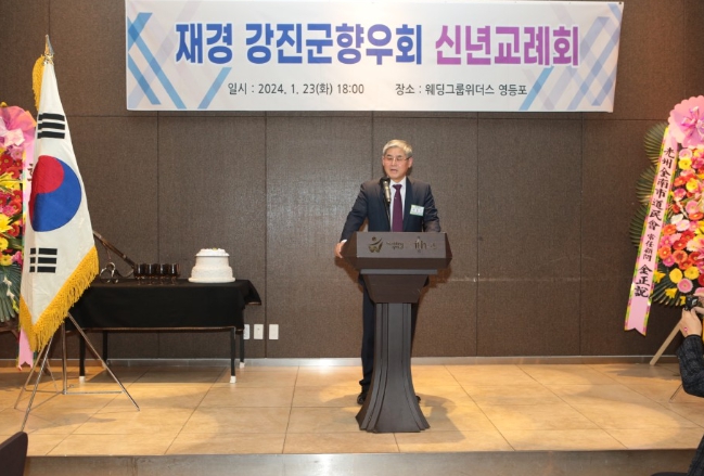 ![]() 재경 강진군향우회가 지난 23일 서울 영등포구 위더스메리엘컨벤션에서 신년 교례회를 가졌다. |