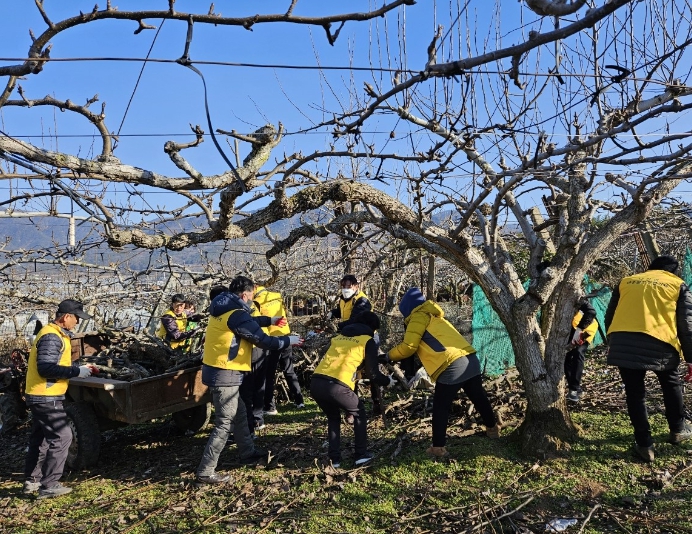 아궁이를 사용해 겨울을 나고 있는 취약계층을 위해 배나무 전정 후 모아 놓은 가지들을 땔감으로 쓸 수 있도록 정리하여 1톤 트럭 4대에 실어 독거 어르신 가정에 전달했다.