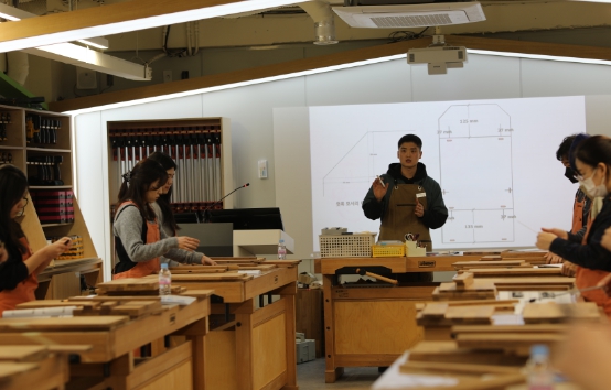 ‘목공 과정’은 기초 단계에서는 수공구과 전동 공구 사용법을 익히고 라탄 기법까지 융합하여 가구를 제작하는 활동을 진행했으며, 심화 단계에서는 학교나 일반 기관에서 사용하기 힘든 대패 사용법을 전달하며 엔드그레인 도마를 제작한다.