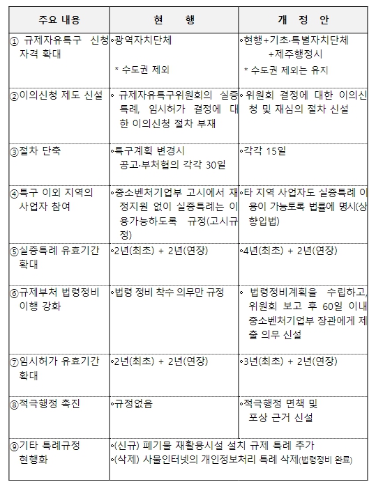 이번 「지역특구법」 개정안의 주요 내용은 다음과 같다.