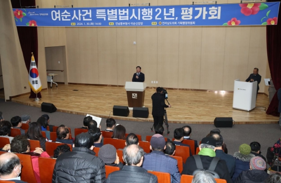 평가회에는 전남도의회 서동욱 의장을 비롯한 도의원, 소병철 국회의원(순천광양곡성구례갑), 서동용 국회의원(순천광양곡성구례을), 여순사건 유족회, 여수시의원, 순천시의원, 시·군 관계 공무원, 시민사회단체 등 500여 명이 참석해 성황을 이뤘다.