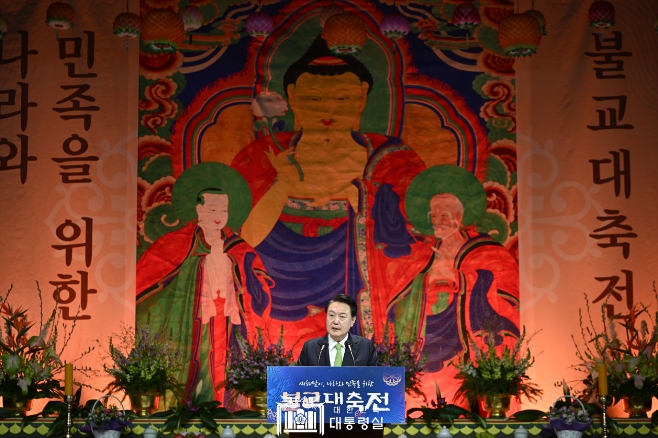 ![]() 1월 30일 윤석열 대통령은 서울 강남에서 열린 불기 2568년 ‘새해맞이, 나라와 민족을 위한 불교 대축전’에 참석했다. |