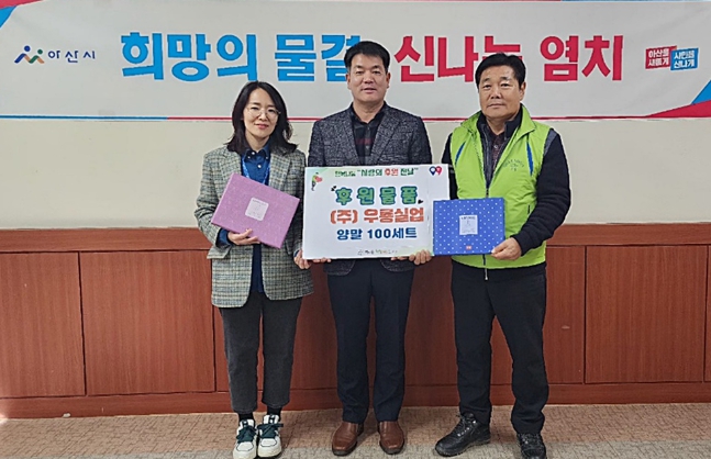 허문욱 단장은 “어려운 시기에 나눔을 실천해준 ㈜우룡실업에 감사드리며, 어려운 이웃들에게 따뜻한 마음을 담아 이 양말을 전달하겠다”고 말했다.
