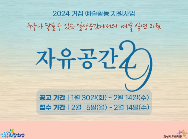 ![]() 화성시문화재단, 거점 예술활동 지원사업 '자유공간29' 공모 접수 |