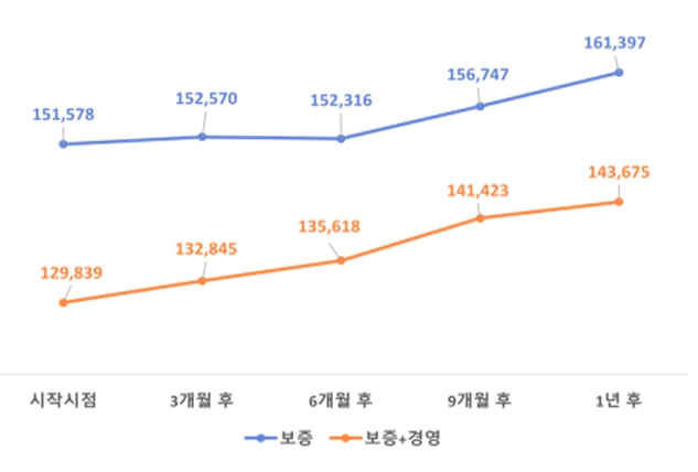 ![]() 지원 후 시점별 매출액 비교 |