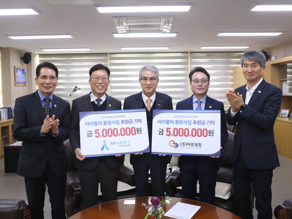 ![]() 아라소프트·아로씽킹, 경상남도미래교육재단 ‘아이좋아 통장사업’후원금 기탁 |
