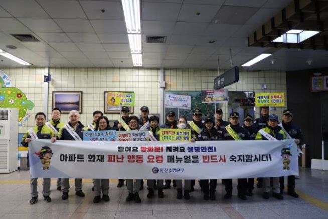 계산역에서 진행된 캠페인은 계양소방서 소속 소방공무원 14명, 의용소방대원 10명 등 24명이 참여했으며 출근길 시민들에게 피켓, 현수막, 홍보 물품 배부를 통해 아파트 화재 피난 행동요령을 알렸다.
