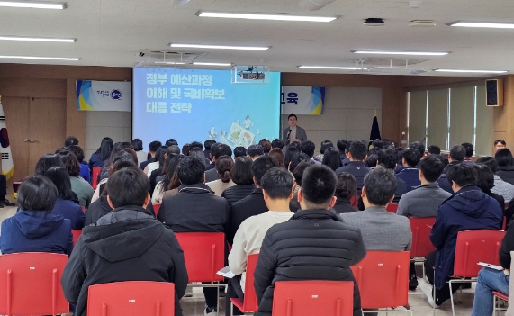 강의는 ▲국비 예산 편성 과정의 이해 ▲국비 확보 전략 ▲우수 사례 설명 순으로 진행됐으며, 체계적이고 실무적인 국비 확보 전략과 방법을 직원들이 알기 쉽게 설명했다.