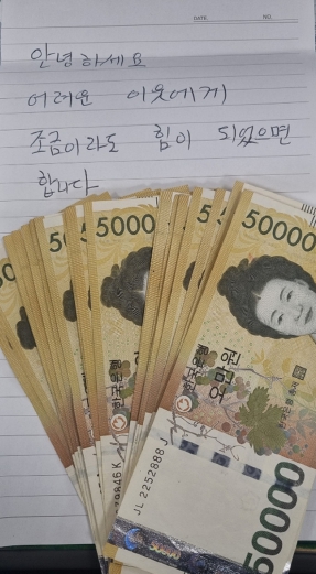 확인결과 “안녕하세요 어려운 이웃에게 조금이라도 힘이 됐으면 합니다”라는 손편지와 함께 120만 원의 현금이 들어있었다.