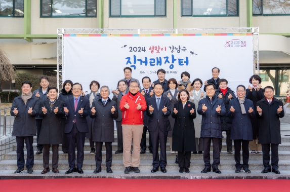 ![]() 31일 강남구의회 의원들이 ‘2024 설맞이 직거래 장터’에서 단체사진을 찍고 있다.(좌측에서 2번째 전인수 부의장·우측에서 3번째 한윤수 운영위원장·2번째 복진경 행정재경위원장·1번째 황영각 복지도시위원장) |