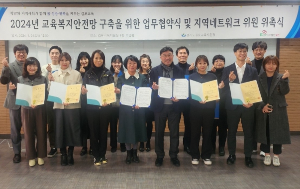 김포교육지원청은 복지 사각지대 제로를 위해 네트워크 기관 위원에 대한 위촉식을 개최하고 사단법인 일만(일만장학회)과 업무협약을 체결했다.