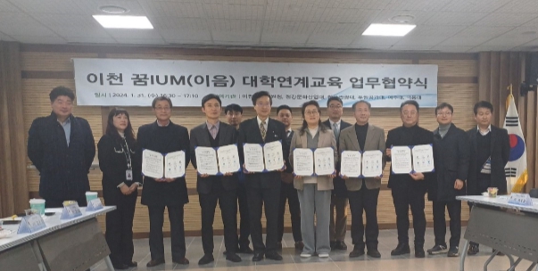 이날 협약식에는 이천교육지원청 김은정 교육장, 청강문화산업대학교 최성신 총장, 한국관광대학교 권혁률 총장, 두원공과대학교 임해규 총장, 여주대학교 배선영 총장 등 6개 기관이 참석했다.