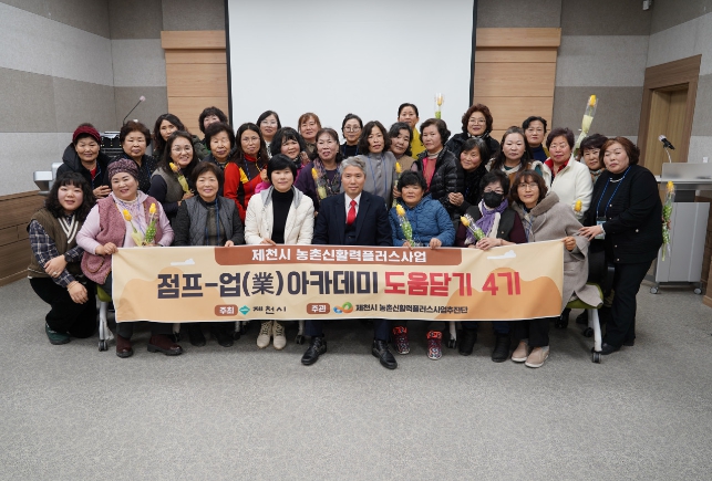 점프-업(業) 아카데미는 제천시 농촌신활력플러스사업의 액션그룹 양성프로그램으로 도움닫기, 도약, 점프-업 등 총 3단계로 진행되며, 이번 도움닫기(기초)과정은 제천 여성 농업인을 대상으로 지난 1월 23일부터 30일까지 총 5회차에 걸쳐 추진되었다.