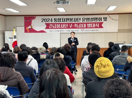 이날 행사는 2024년 재난현장 통합자원봉사단 운영설명회를 시작으로, 긴급봉사단 V-특공대 회원 60명을 위촉하고 통합자원봉사단의 현장 대응훈련 단합 활동을 위해 봉화산 일대를 산행하는 시간을 가졌다.
