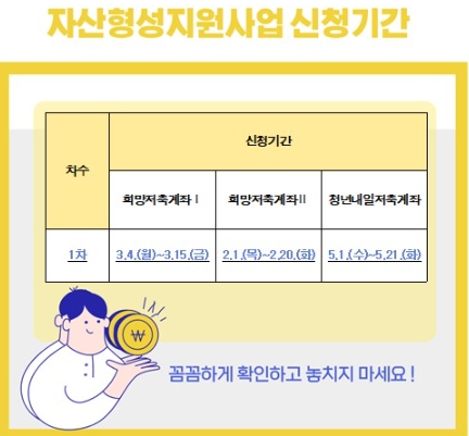 기타 세부사항은 사회복지과 생활보장팀 또는 자산형성지원사업 콜센터,관할 주소지 행정복지센터에 문의 시 답변 받을 수 있다.
