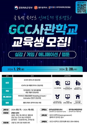 ![]() 광주광역시 ‘GCC 사관학교’ 설립…글로벌 콘텐츠 인재 키운다 |