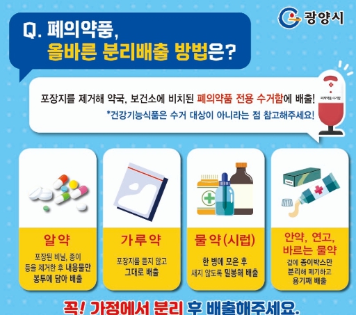 ![]() 광양시, 폐의약품 올바르게 분리배출 해주세요 |
