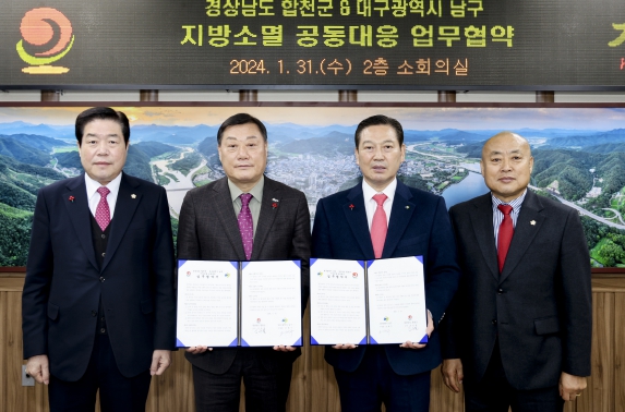 ![]() 첫번째 사진 왼쪽부터 이충도 대구 남구의회 의장, 김윤철 합천군수, 조재구 대구 남구청장, 조삼술 합천군 의회의장 |