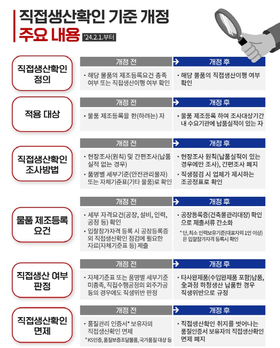 ![]() [인포그래픽] 직접생산확인 기준 개정_주요 내용. |