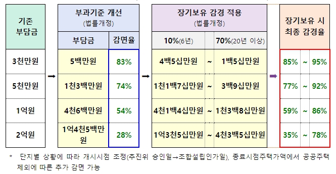 개정법률에서는 장기 1세대 1주택자에 대해 보유기간에 따라 최대 70%까지 부담금을 감경하는 규정이 신설됐다.