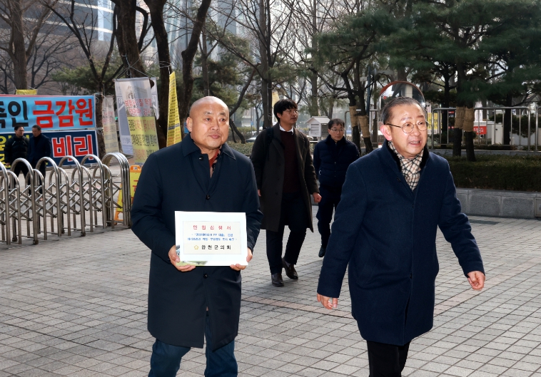 합천군의회 조삼술 의장 외 10명의 의원 전원은 1일 서울시 여의도에 소재한 금융감독원을 방문해 ‘영상테마파크 숙박시설 조성사업 PF 대출’ 승인 과정 중 제기된 대리금융회사인 메리츠증권의 위법 · 부당행위에 대한 금융감독원의 즉각적인 조사를 강력히 촉구했다. 또한 ‘영상테마파크 숙박시설 조성사업 PF 대출기관’ 금융감독원 조사 촉구문을 민원신청서와 함께 금융감독원에 제출했다.