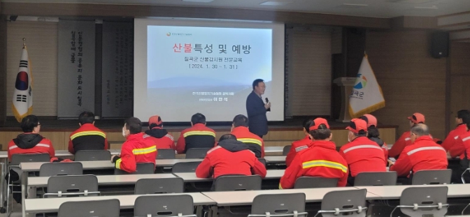또한 1월 30~31일 이틀간 칠곡군청 및 호국평화기념관 일원에서 산불전문예방진화대 및 산불감시원의 산불방지 직무, 안전교육을 실시하여 업무 역량과 안전관리를 강화했다.
