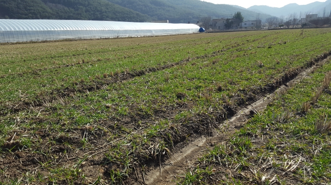 평균 영상 기온이 3일 이상 지속되는 2월 상중순, 대략 2월 10일 전후로 보리나 밀밭으로 나가서 보리나 밀을 한 포기 뽑아보자.