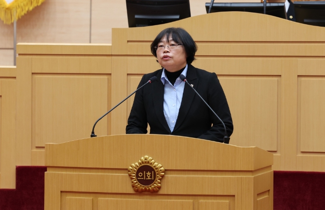 ![]() 장은영 의원이 제377회 임시회 제2차 본회의에서 5분 자유발언을 하고 있다.] |