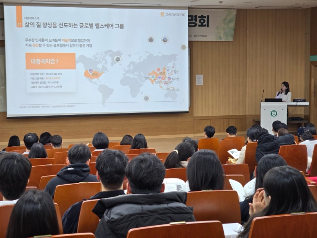 올해 2회째를 맞이한 이번 채용설명회에서는 참석대상을 전국 20개 대학 약학대학생까지 확대하여, 약 100명의 학생들과 도내 5개 제약기업(동국제약, 대웅제약, 대원제약, 셀트리온제약, 에이치케이이노엔) 관계자들의 만남이 이루어졌다.