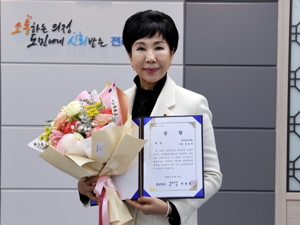 ![]() 한춘옥 전남도의원, 제15회 지방자치경영대상 광역의회 의정대상 수상 영예 |