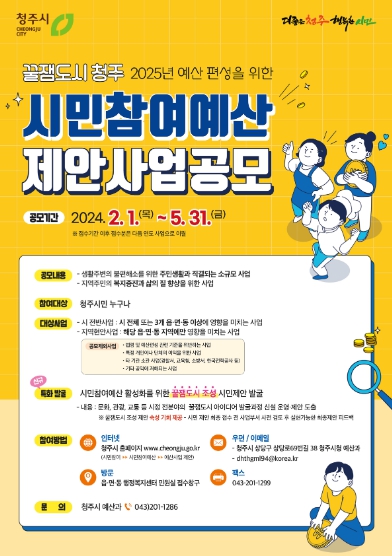 ![]() 청주시, 2025년 시민참여예산 제안사업 공모 |