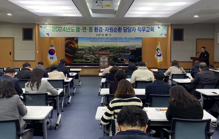 이번 교육에는 읍면동 환경, 자원순환 업무 담당팀장 및 담당자 48명이 참석했으며, 올해 안동시 클린시티 추진방향을 공유하고 각 분야별 업무처리 방법 등에 대해 교육이 이루어졌다.