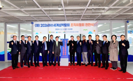 ![]() 재단법인 2026여수세계섬박람회 조직위원회(공동위원장 김영록 전남 도지사, 정기명 여수시장, 박수관 ㈜YC-TEC 회장)가 2일 오전 박람 회장 국제관 A동 2층에서 현판식을 가졌다. |