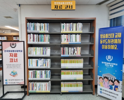 동부도서관 2층 종합자료실 내에 조성되는 ‘한국방송통신대학 자료코너’는 방송통신대 학과별 교재, 참고자료 등 발간자료 1,200여권이 비치되며 시민 및 재학생들이 쉽고 편리하게 자료를 이용할 수 있다.