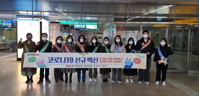 ![]() 남구보건소는 지난 1일 서부정류장역 지하철 역사에서 코로나19 인플루엔자 동시 접종 홍보 캠페인을 실시하였다 |