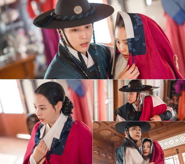 수호는 갑자기 나타난 누군가로부터 여화를 지키려 쓰개치마로 잽싸게 얼굴을 가린다.