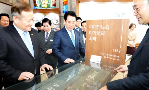 ![]() 이상민 행정안전부 장관과 김영록 전라남도지사가 2일 오후 고흥 마리안느·마가렛 기념관에서 열린 자원봉사 ‘온기나눔’ 워크숍 입교식 행사에 참석, 기념관을 둘러보고 있다. |