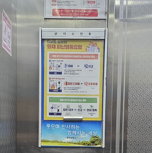 또 2월 말까지 ‘아파트 화재 피난요령’ 집중 홍보 기간으로 정하고 방송매체, 도·시군 전광판, 승강기 모니터, 누리소통망(SNS)에 집중 홍보 중이다. 찾아가는 안전교육과 민방위·안전한국훈련에도 대피 요령을 홍보할 방침이다.