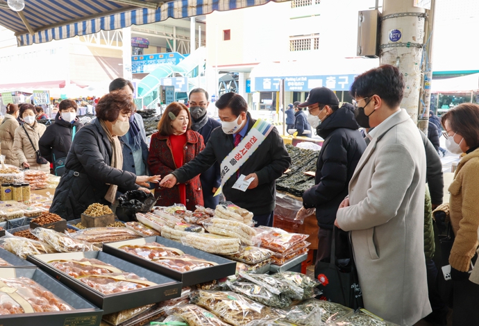 설맞이 전통시장 장보기행사는 5일 번개시장, 교동시장을 시작으로 6일 남문시장, 서문시장, 7일 염매시장, 방천시장을 찾아 시장 상인들을 격려하고 온누리상품권 등으로 명절 제수용품 및 다양한 농·수산물 등을 구매할 예정이다.