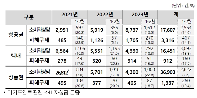 ![]() 항공권 · 택배 · 상품권 관련 소비자피해 현황 |