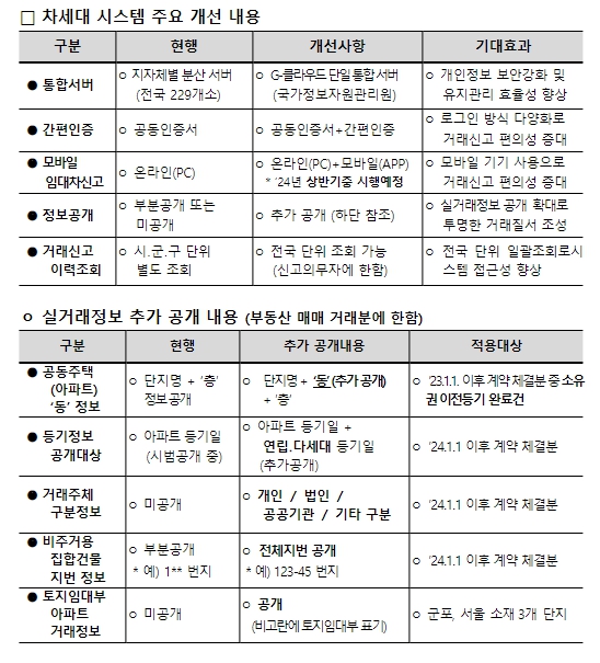 한편, 국토교통부는 데이터 이관, 사전 테스트 등 시스템 전환작업을 위해 부동산 거래 신고 건수가 상대적으로 적은 설 연휴기간 중 현행 시스템의 운영을 일시 중단한다.