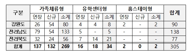 2024학년도 1학기 농촌유학에 참가하는 서울 학생은 305명으로, 강원 90명, 전남 138명, 전북 77명이다.
