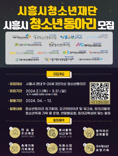 ![]() (재)시흥시청소년재단, 2024년 청소년동아리 모집 |