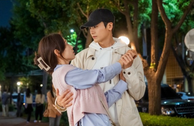 그런 가운데 공개된 사진 속, 남하늘과 여정우의 부쩍 가까워진 거리감이 보는 이들의 마음을 간질인다. 먼저 밤거리를 걷던 중 남하늘이 넘어질 뻔한 상황, 여정우가 그를 품에 감싸 안은 모습이 이목을 집중시킨다.