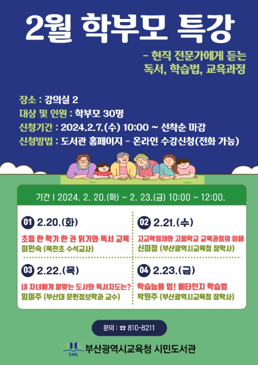 이번 특강은 자녀에게 맞은 도서 선택을 돕고, 가정·학교에서의 독서교육과 학습법 등에 대한 학부모 역량을 키워주기 위한 것이다.