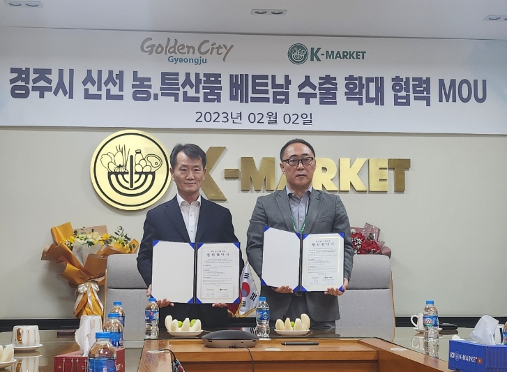 지난 2일 베트남 하노이 현지에서 열린 협약식에는 공종태 경주시 농업유통과장, 고상구 K-마켓 회장이 참석해 업무협약서에 서명했다.