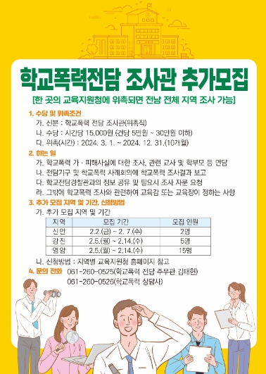 ![]() 전남교육청 학교폭력전담조사관 추가 모집 포스터 이미지 |